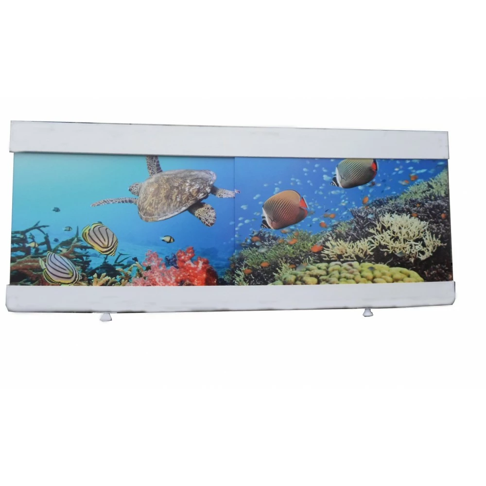 Высота экрана составляет 50 см + 2 см ножки. Регулировочная высота от 52 см до 60 см. В этой серии экранов можно сделать вырез под порожки и трубы вдоль стен самостоятельно. При этом не нарушая целостности и функций конструкции.Экран скроет ужасное темное пространство под ванной, так, что Вы сможете ещё и использовать это место с пользой. Спрячьте за экраном бытовую химию, и посмотрите сколько места у Вас освободилось в шкафу? Целая полочка, а может и две.Раздвижные створки экрана под ванну изготовлены из композитной сендвич-панели. Они плотные, крепкие, влагостойкие, выносливые.
