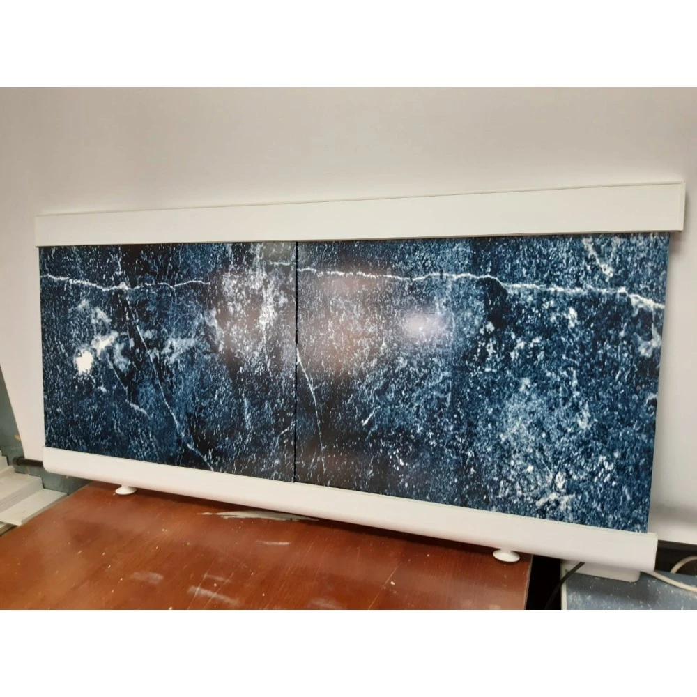 Экран под ванну служит нескольким функциям, одна из них это закрытие пространства под ванной, а так же декоративное оформление ванной комнаты. Корпус экрана выполнен из пластика толщиной 2 см, раздвижные шторки могут быть из вспененного ПВХ или композита (алюминиевый  пластик ) толщиной 3 мм. Корпус данного экрана разработан специально для уменьшения его ширины на 25 см с каждой стороны, что позволяет его самостоятельно подогнать под ваши индивидуальные размеры. Картинки могут быть любые из нашего сайта или же можем совместно с вами подобрать индивидуально вашу картинку под дизайн вашей ванной.