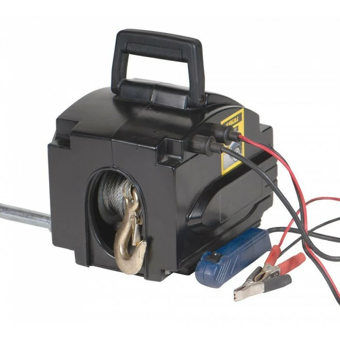 Данная модель позволяет легко манипулировать грузами, весом до 907 кг. Переносная лебедка оснащена пультом управления, тросом, длиной 4 м, компактным закрытым корпусом и ручкой, которые обеспечивают более удобное хранение и транспортировку устройства.
