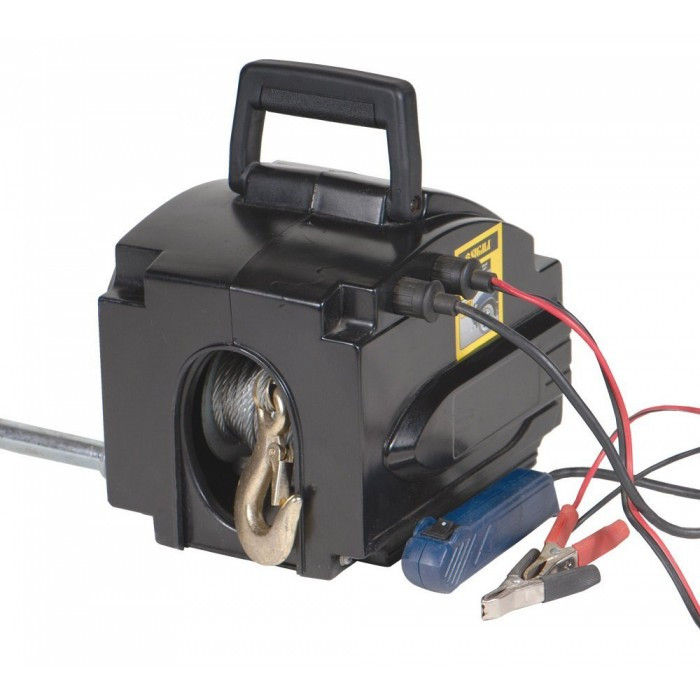 Данная модель позволяет легко манипулировать грузами, весом до 907 кг. Переносная лебедка оснащена пультом управления, тросом, длиной 4 м, компактным закрытым корпусом и ручкой, которые обеспечивают более удобное хранение и транспортировку устройства.