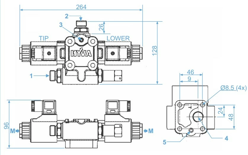 - патроны для настройки максимального рабочего давления. Типичные клапаны оборудованы зажимными винтами, которые регулируют максимальное рабочее давление. Водители часто регулируют давление, для увеличения подъемной силы цилиндра (перегрузки). В результате цилиндр может получить повреждения. Клапаны PT имеют сменные патроны максимального давления, с заводской установкой на определенное давление, нерегулируемые. Для изменения максимального давления, необходимо заменить патроны.