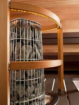 Harvia Kivi можно устанавливать рядом с полками, поскольку температура поверхности каменки остается сравнительно низкой. Можно также встроить печь в нижний полок с использованием монтажного фланца из нержавеющей стали. Также можно установить защитное ограждение, изготовленное из ольхи.