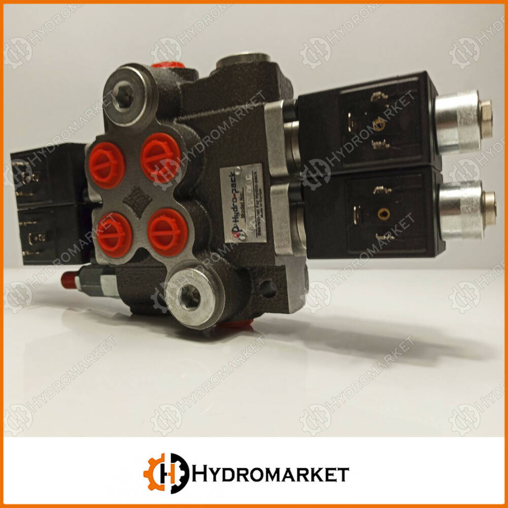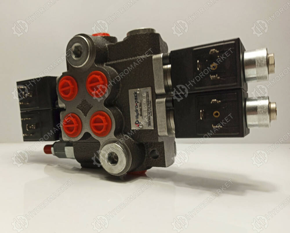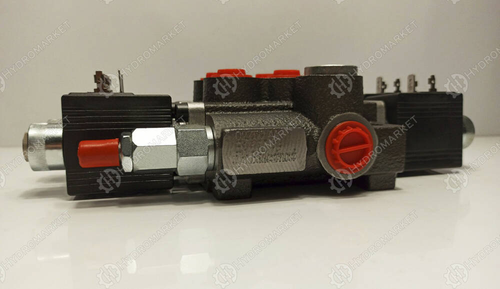 Если на катушку распределителя не подавать ток, то масло с подачи идет на слив и так циркулирует. Если дать ток на катушку, масло по рабочей линии пойдет в гидроцилиндр. Устройство может управлять гидроцилиндрами одностороннего и двустороннего действия. Устройство имеет предохранительный клапан который выставлен на 175Bar.