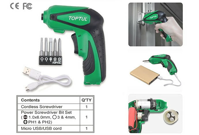 Электроотвертка TOPTUL 1/4" 3.6V 3Nm 350об/мин KPDB0803. Эргономичная электроотвертка 1/4" позволяет выполнять работы одной рукой, автоматически закручивает соединения до усилия в 3 Нм. Редуктор полностью металический.