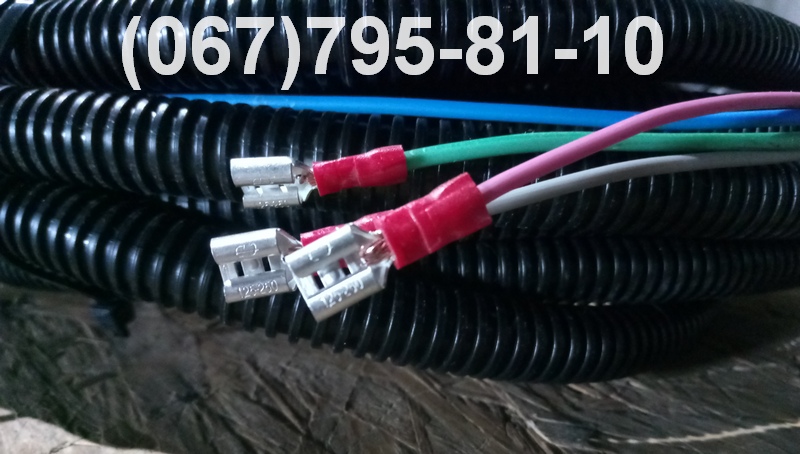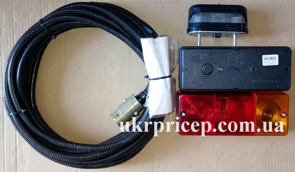 Семь проводов ПГВА-0,75 масло- , бензостойких. По всей длине проводка уложена в гофру. На концах проводов установлены клеммы для подключения фонарей. Выведена клемма "масса", отдельно клемма для подключения подсветки номера.
