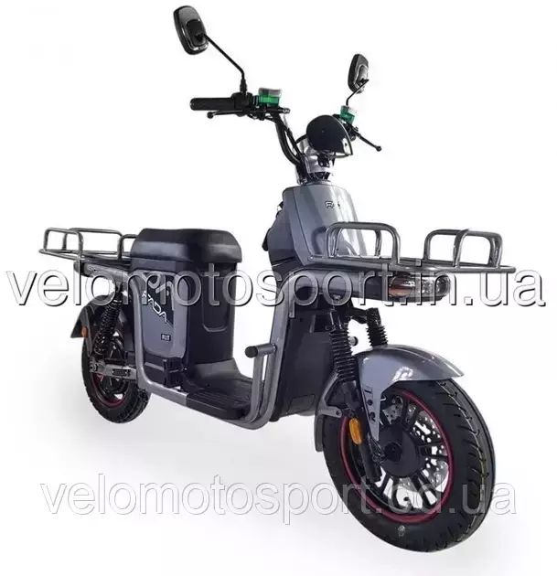 Модель грузового электроскутера для хозяйственного или коммерческого использования. Оснащен передней и задней багажной платформой для перевозки малогабаритных грузов.