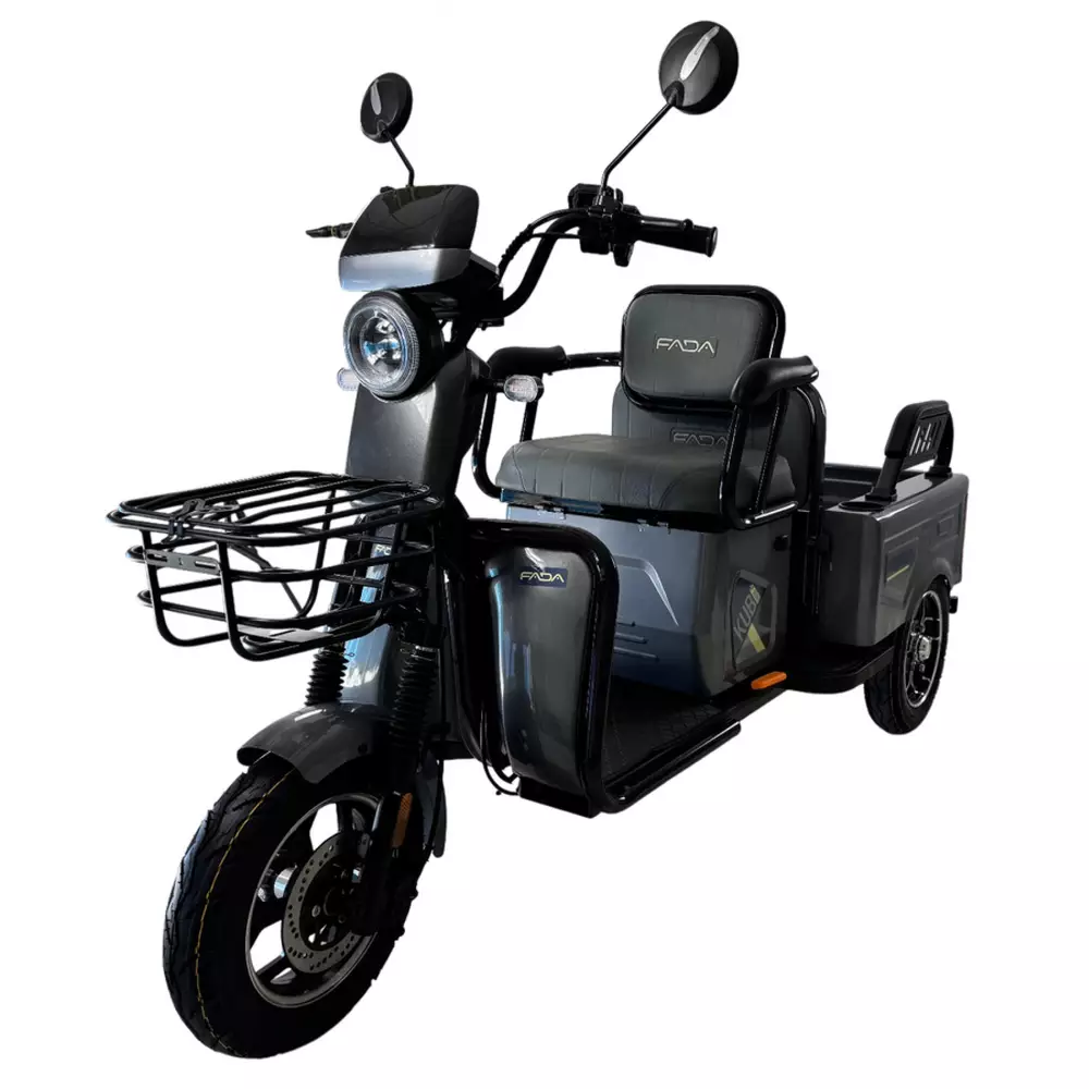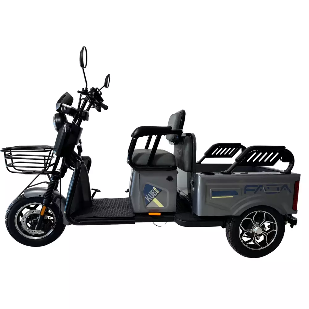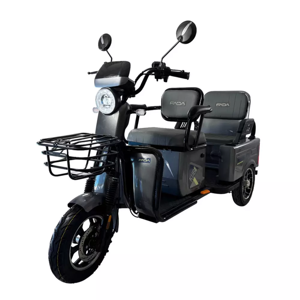 Электротрайк грузовой FADA KUBi PW 1000W - Модель оснащена передней багажной корзиной для удобного размещения малогабаритной клади и функциональным пространством сзади, который может трансформироваться в место для сидения пассажира или в кузов, для перевозки сравнительно небольшого груза.