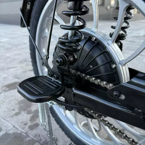 Легка, але міцна конструкція дозволяє легко маневрувати у щільному міському потоці, а великі колеса забезпечують плавність руху навіть на нерівних дорогах. Ергономічне сидіння, зручне керування та стильний дизайн роблять цей електробайк надійним супутником на кожен день.