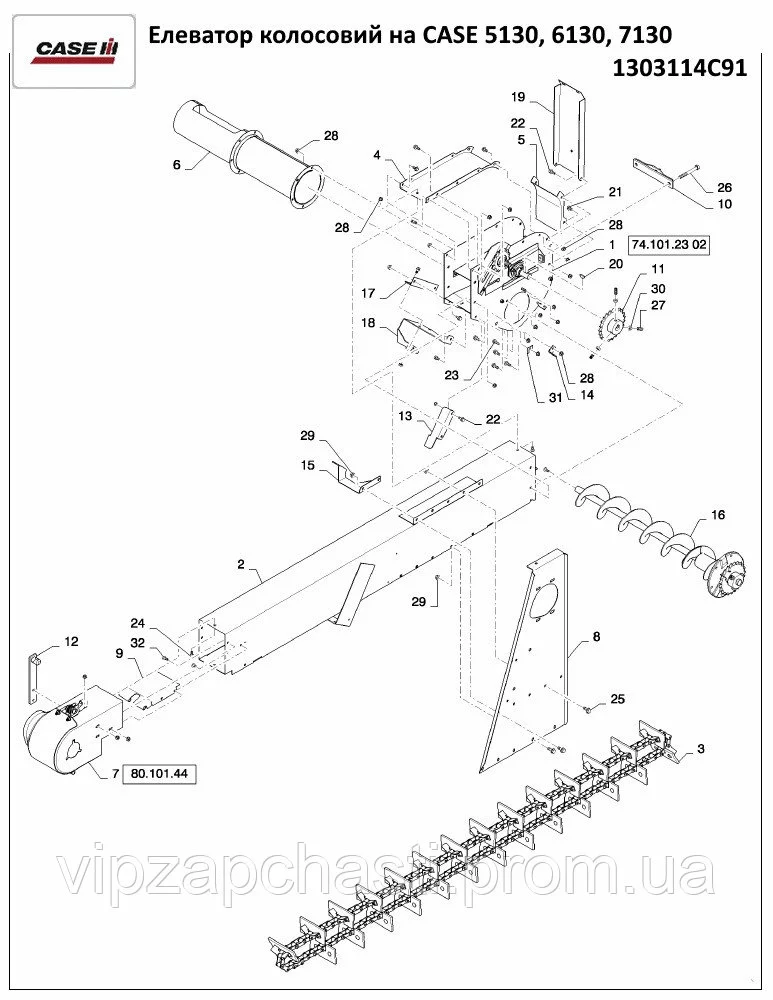 Елеватор колосовий на CASE 5130, 6130, 7130 1303114C91