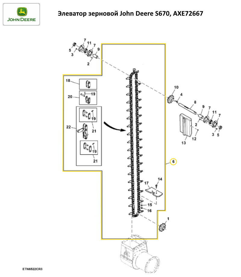Транспортер зерновой (высокая емкость бункера) комбайна John Deere S670, AXE72667
