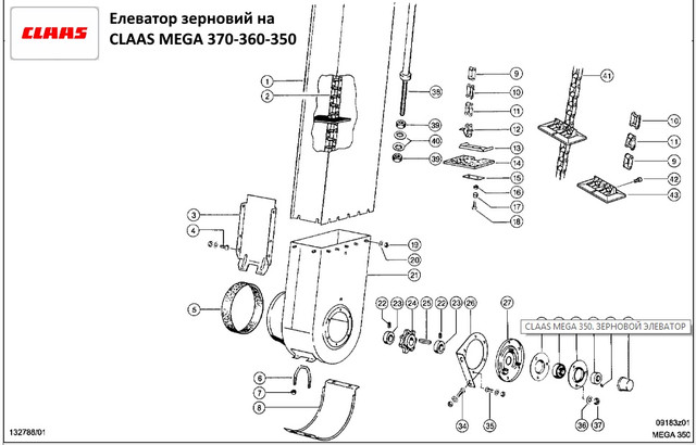 541782.0 Елеватор зерновой в сборе на комбайн CLAAS MEGA 370-360-350