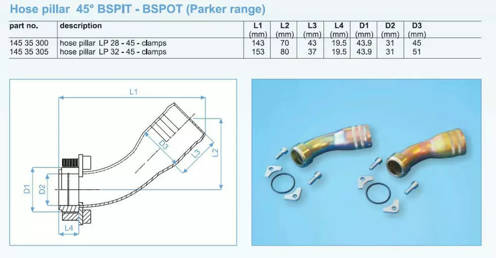 Елка на шланг НД 45 град 1½" - Ø 45мм (на by-pass Parker)
