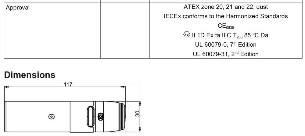 Датчик iDOL 46 —  одобренны ATEX.  Исполнение ATEX делает датчик подходящим для установок, где пыль представляет угрозу неминуемого взрыва, классифицированную по зонам 20 и 21.