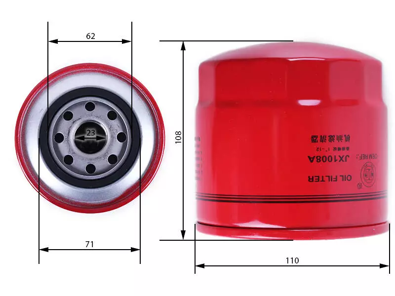 Фильтр масляный - Jinma 354, Булат 244/354 (JX1008A). Размеры: H-105mm, Ø23mm. Вес: 590 гр.
