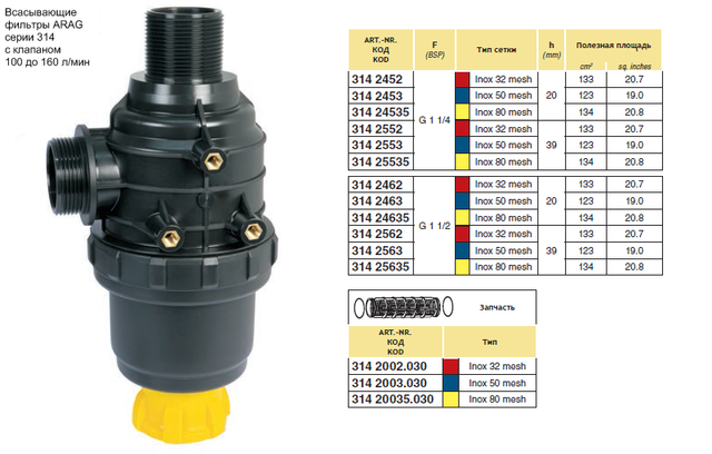 Всасывающие фильтры серии 314