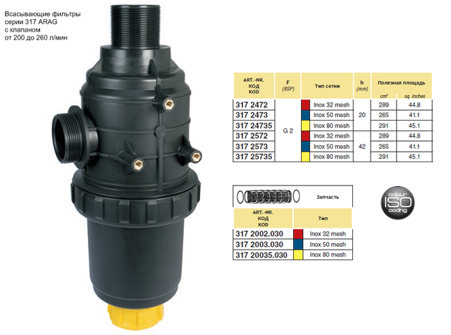 Всасывающие фильтры серии 317 (ARAG Италия)