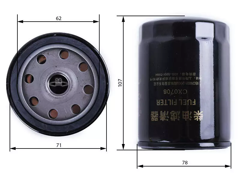 Фильтр топливный - ДТЗ 454/504 (CX0708). Размеры: H-...mm, Ø14mm. Вес: ... гр.