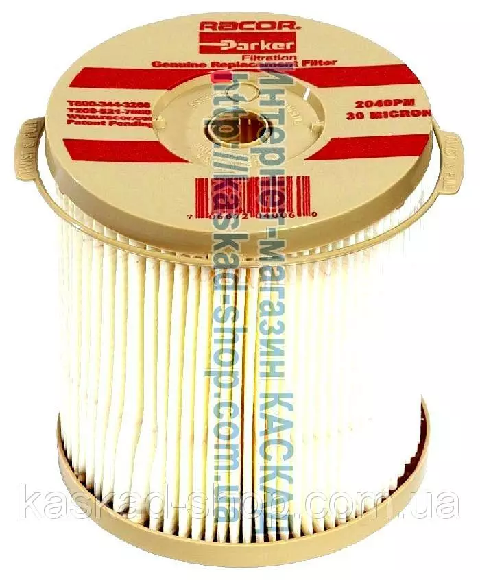 Racor-2040PM/OR. Фильтр топливный разработан специально для турбинных судовых фильтр-сепараторов  Volvo Penta-877769.  877768. Для  дизельных судовых двигателей  до 750 л/с. Эти  сменные картриджи очистки горючего выпускаются американским концерном Parker/Racor  с применением современных технологий, что гарантирует стопроцентное (100%) осушения солярки ( ДТ,) . Racor2040PM-OR  эффективно удаляет мелкие 30-микронные частицы и загрязнения. Для сравнения волос человека в разрезе 55-70 микрон.