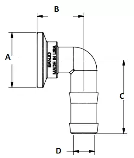 • Размеры: А/В/С/D — 1"/43,65 мм/69,05 мм/19,84 мм.