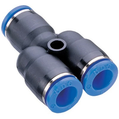 Фитинг пневматический У-образный, или airfitting присутствует в любой пневматической системе управления. В наличии разные размеры пневматических соединений: