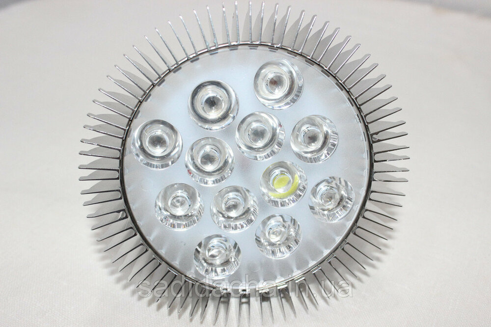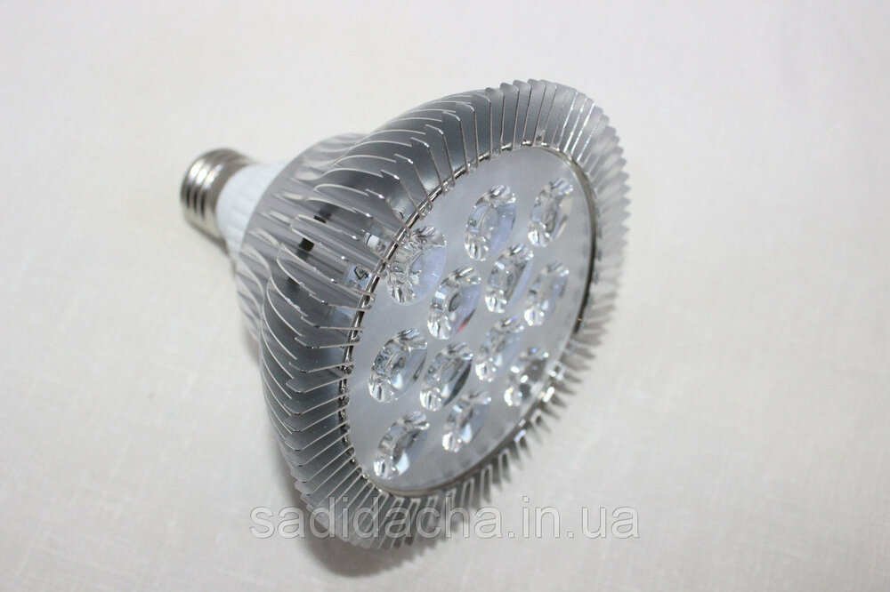 LED фитолампа для растений полный спектр 36 Вт с алюминиевым рифленым радиатором охлаждения и встроенными линзами. Внутри лампы есть драйвер ее нужно просто в крутить в патрон Е27 стандартный цоколь и она будет работать.