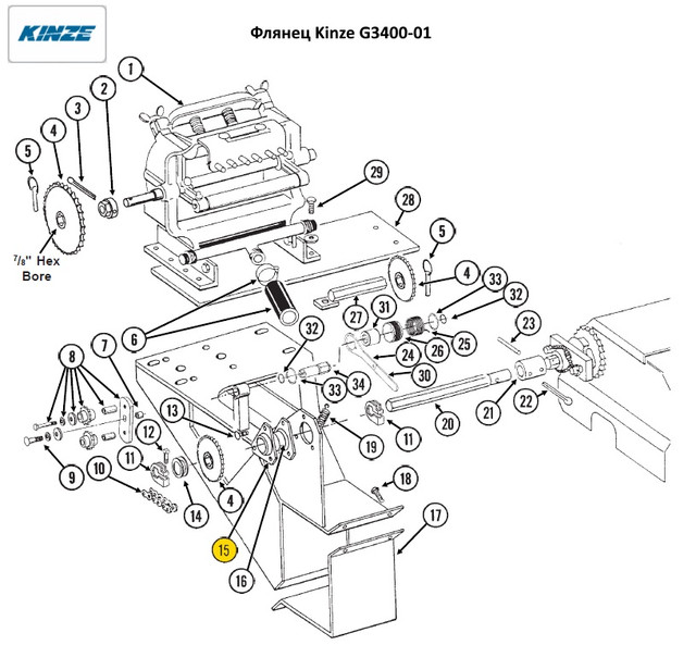 16.- G2100-03 - 1 Bearing, 7/8" Hex Bore,