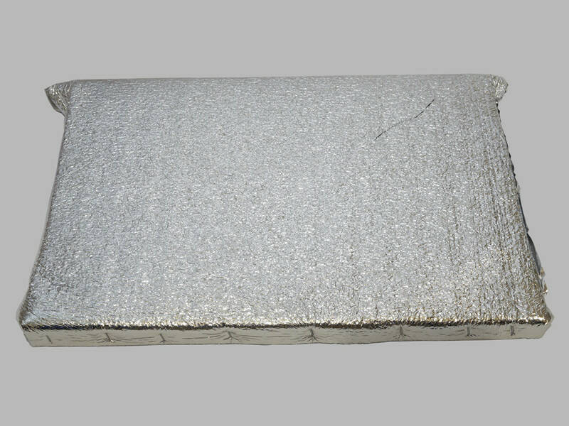 Фольгированный боковой утеплитель изготовлен из деревянной рамки, в которую крепится пенопласт, толщиной 20мм, с двух сторон закрыта ДВП и сверху обшита специальным изолирующим материалом – фольгоизолом. Изолирующий материал покрывает всю поверхность, включая все стыки. Защита и тепло внутри улья гарантированы.
