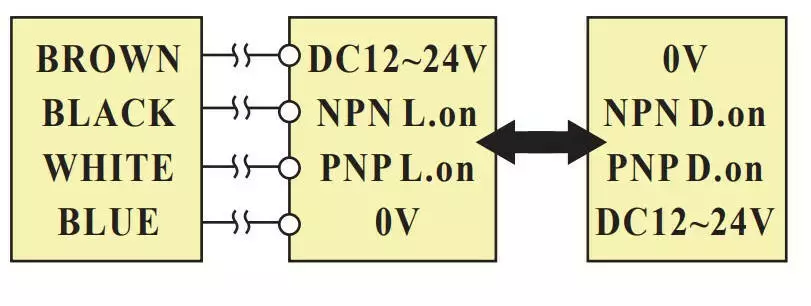 Выход: PNP/NPN, D.on/L.on  12-24VDC