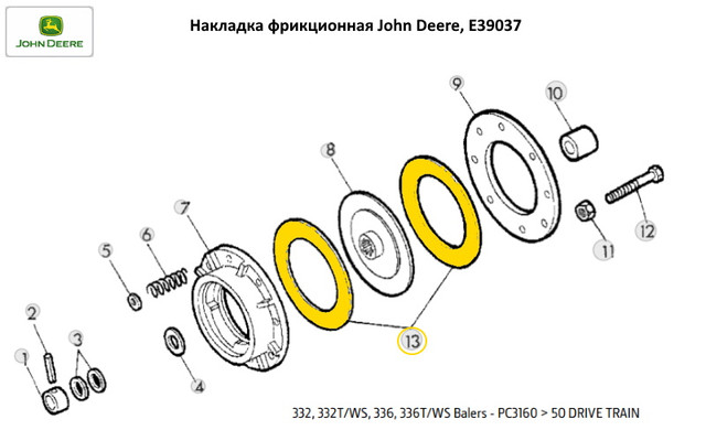 7 - Clutch - 1 - Part Number : E57134 - Models : 332, 336 Remarks : (SUB FOR E38906)