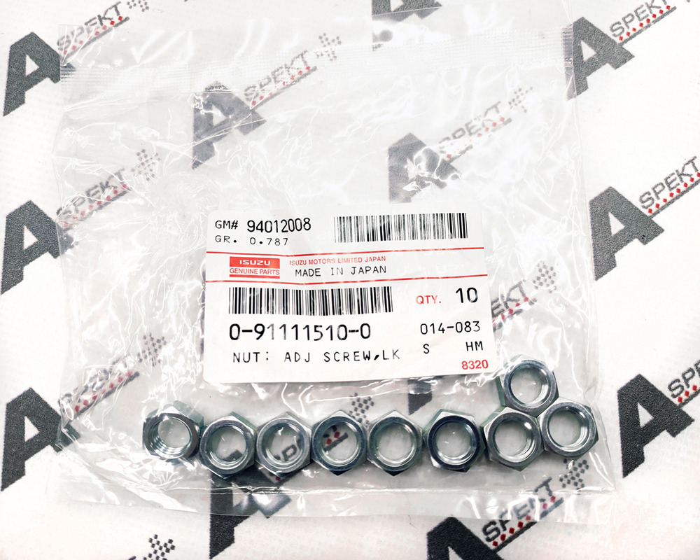 Оригінальна запасна частина Isuzu: Гайка на гвинт M10 Isuzu 4HK1 6HK1 6HE1 6BG1 6BD1 6BB1 0911115100, NUT; ADJ SCREW