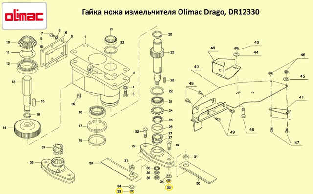 Гайка крепления ножа измельчителя Olimac Drago DR12330, поз.33