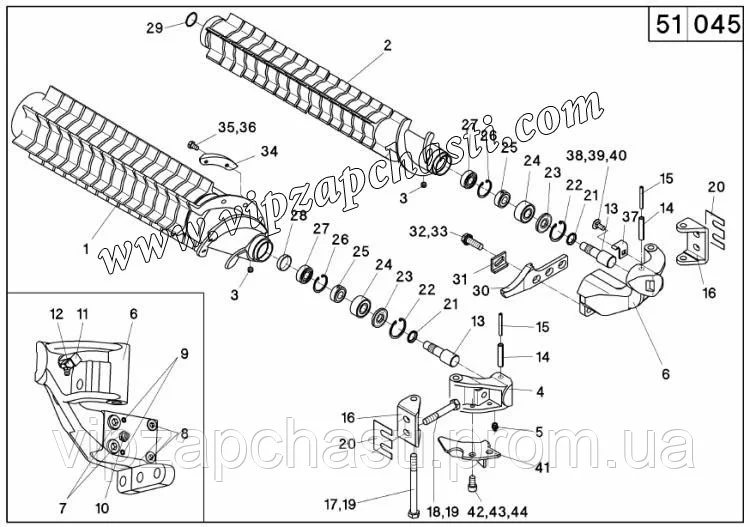 в сборе с кронштейном Pos. 2, 3, 6-15, 21-27, 29, 37-40