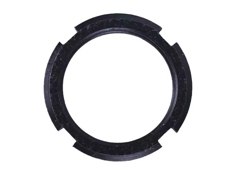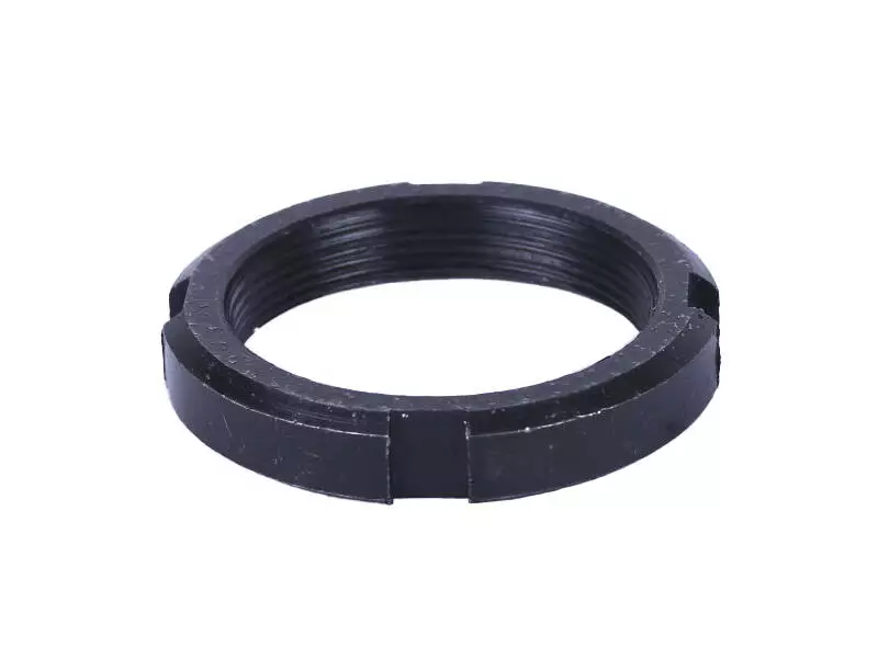Одной из ключевых особенностей детали является внутренняя резьба с мелким шагом, обеспечивающая надежную фиксацию деталей, предотвращая самопроизвольное откручивание в процессе работы механизма под воздействием вибраций и нагрузок. Таким образом, эта гайка способствует стабильности работы всего механизма.