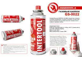 Газ в балоні-катріджі одноразовий  INTERTOOL GS-0022 220 г сумісний з усіма газовими приладами, які оснащені відповідним цанговим посадковим місцем: газові плити, пальники, паяльні лампи.