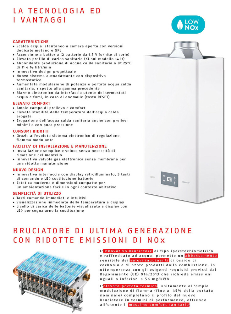 Особенности Стандарт LOW NOx, использование вторичного и третичного воздуха, двойной термостатический клапан, мгновенный нагрев воды.