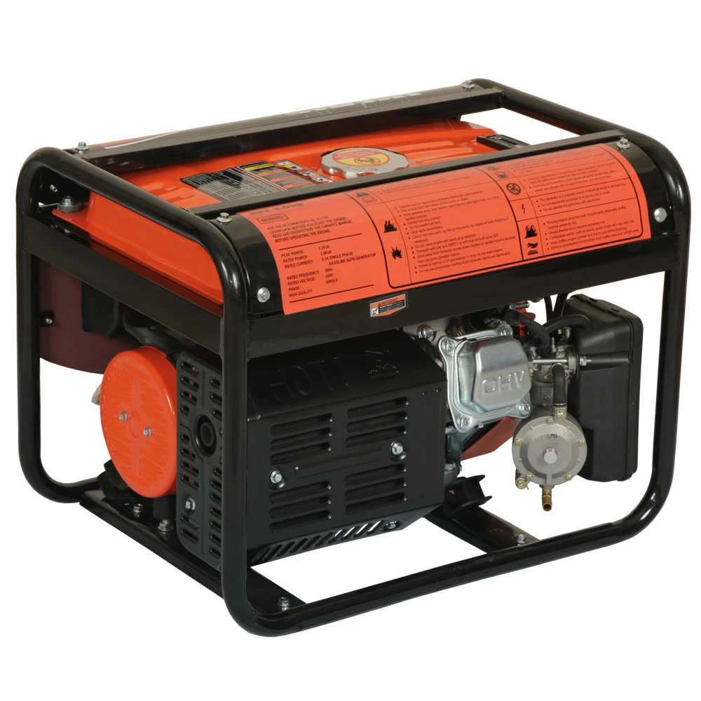 Для питания миниэлектростанции сжиженным газом используются специальные бытовые баллоны, емкостью от 100 мл до 50 л. В свою очередь для питания двигателя бензином предусмотрен топливный бак, емкостью 15 л. При таких возможностях изделие способно непрерывно вырабатывать электрический ток в среднем до 12 часов. Номинальный расход топлива при этом составляет: при работе двигателя на бензине – 395 гр/кВт*ч, при работе на газе – 400 гр/кВт*ч.
