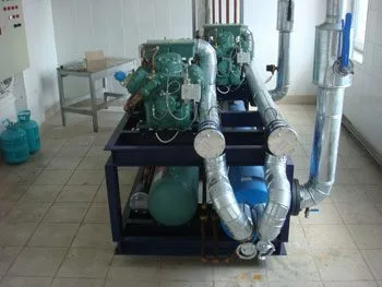 Промышленное охлаждение воды до температуры +3°С в настоящее время производится в пластинчатых испарителях. Разработано много вариантов обращения рабочих сред в пластинчатом испарителе в соответствии с требованиями к потерям давления, к направлению циркуляции, турбулентности и т.п. Но общий принцип действия всех схем одинаков.