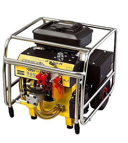 Гидростанция Atlas Copco LP 18 Twin E с бензиновым двигателем B&S Vanguard мощностью 18 кВт и двумя выходными патрубками для подключения двух инструментов одновременно, например, два гидравлических отбойных молотка, потребляющих до 20 литров масла в минуту. Либо Вы можете подключить один инструмент, но потребляющий до 40 литров масла в минуту.