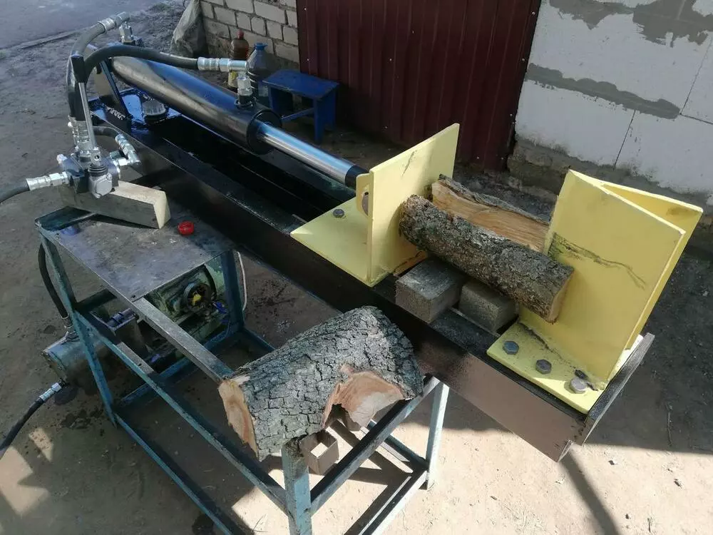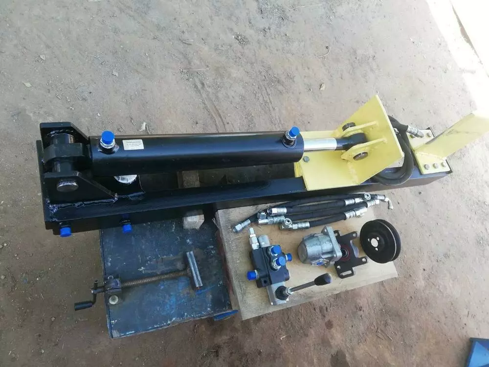 Изготовлен так что бы дровокол с лёгкостью мог бы установится на любой поверхности. Хорошо подходит для тех у кого уже есть дома церкулярка либо что то другой с электро или бензо двигателем Можно установить на стол, а привод насоса привисти с помощью электродвиготеля церкулярки.