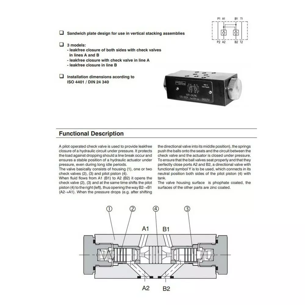 Клапан - дивертор сохраняет постоянный перепад давления над пропорциональным направленным клапаном, вследствие чего колебания давления, вызванные насосом, не влияют на поток. Желаемый перепад давления между P и A, B-линиями регулируется 5-40 бар.