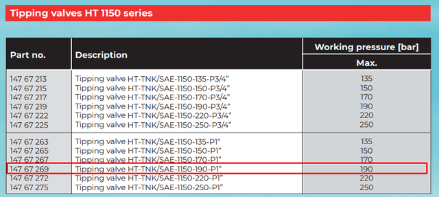 Клапаны серии HT 1150 подходят для опрокидывания в системах, где максимальный расход масла не превышает 150 л / мин. Это очень хороший выбор для стандартных самосвалов с малой грузоподъемностью