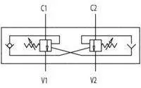Двусторонний клапан - дивертор представляет собой клапан противодавления, который может использоваться, например, для мягкой работы. Второй рабочий канал не открывается, пока управляющее давление второго канала не превысит установленное минимальное значение. Может быть соединен с ванной и трубкой непосредственно со стороны цилиндра.