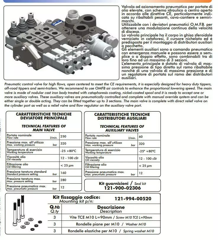 | V252BPAP | 1 + 1 | 250 | 60 | Главный клапан + 2toim |