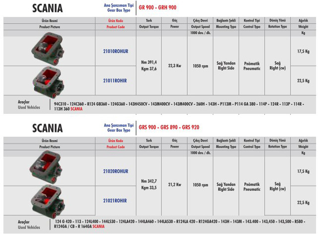 GRS 900 - GRS 890 - GRS 920 – применяемость 124 G 420 - 113 - 124L400 - 144L530 - 124LA420 - 144LA460 - 144LA530 - R124LA 420 - R124GA420 - 143H - 143M - 143.400 - 143,450 - 143,500 - R580 -R124GA / CB - R 164GA SCANIA