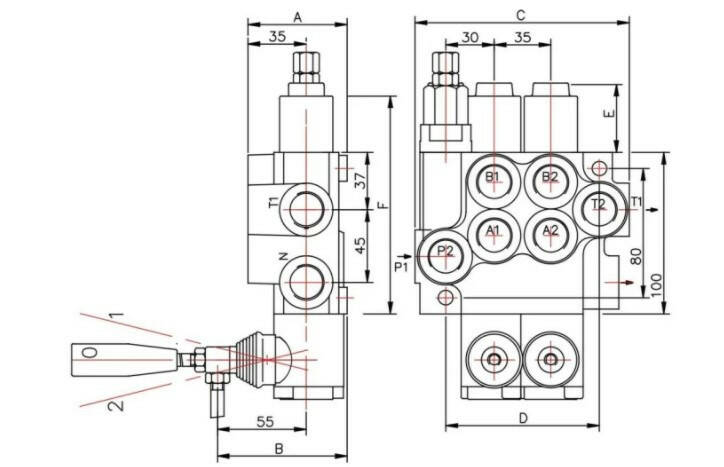 Гидравлический распределительный клапан Р40 с ручным или механическим управлением предназначен для распределения и контроля рабочего потока между генератором (насосом) и исполнительными механизмами (цилиндром, гидромотором и т. д.). Производится с 1 до 7 плунжерами.