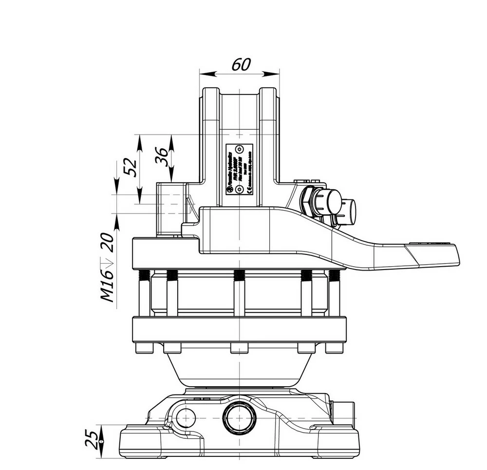 Нижняя часть ротатора выполнена в виде квадратного фланца для непосредственного монтажа на грейфере или инструменте при помощи винтов