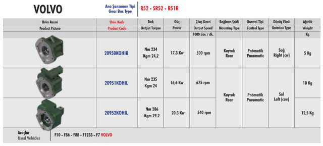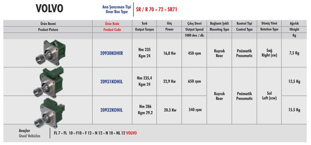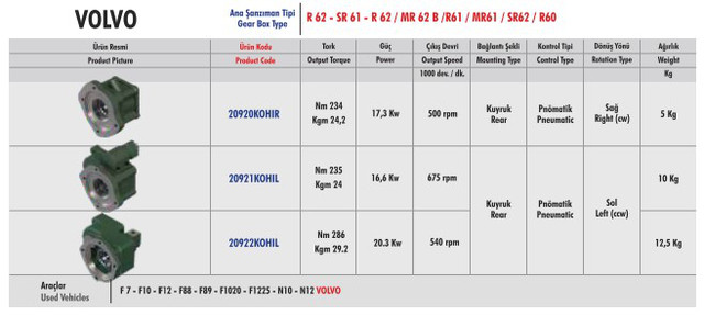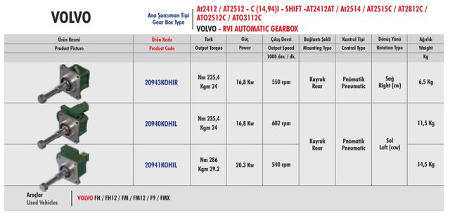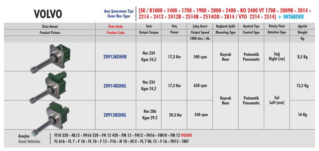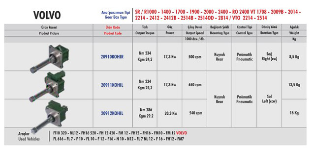 Коробки отбора мощности, которые подходят для тягачей VOLVO