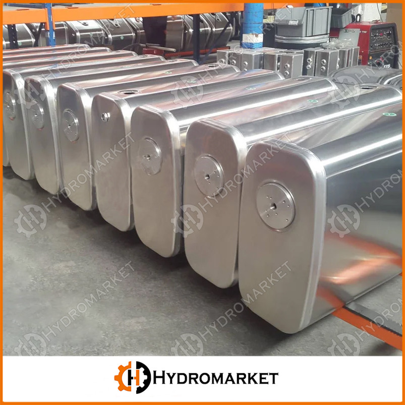 Алюминиевый гидробак комплектуется суппортами, фиксаторами, горловиной бака, индикатором уровня масла и обратным масляным фильтром высокого давления.