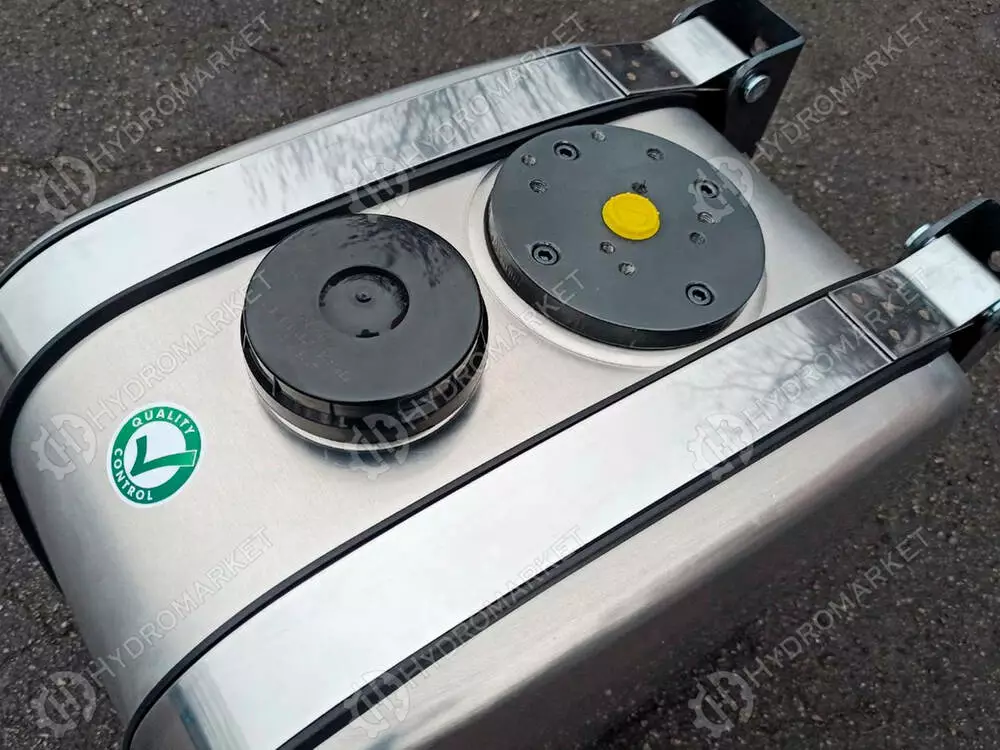Этот гидравлический бак бокового крепления объёмом 65 литров с верхним расположением площадки под распределитель идеально подходит для компактной спецтехники, мини-погрузчиков, тракторов, коммунальной и сельскохозяйственной техники, где важны небольшой вес, устойчивость к коррозии, компактные размеры и удобство монтажа. Изготовлен из высококачественного алюминиевого сплава 5754 H111 в соответствии со стандартами BS EN 10204/3.1, имеет оптимальные габариты для монтажа сбоку рамы или кузова. Алюминиевый корпус значительно легче стального аналога, устойчив к коррозии и обладает отличной теплопроводностью.