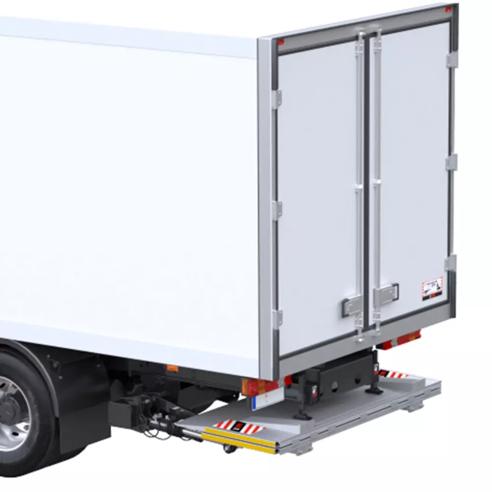 Подъемник имеет раму из высокопрочной стали, покрытую порошковой краской, а также доступны платформы различных размеров и вариантов исполнения. Эта машина обладает надежной и прочной конструкцией, защищенными от коррозии цилиндрами и новой твердотельной системой управления, что делает ее идеальным выбором для работы с тяжелыми грузами на всех типах грузовиков. Плавное движение обеспечивается системой скольжения, в которой гидравлический мотор приводит в движение две звездочки, вращающиеся и проходящие под профилями скольжения, направляемыми прочными цепями. Шум при работе сведен к минимуму благодаря встроенному гидравлическому блоку, в котором также размещены чувствительные компоненты. Для максимального увеличения дорожного просвета доступна версия slimline. Все варианты грузоподъемности оснащены подпружиненными складными алюминиевыми платформами, которые обеспечивают малый вес и удобство использования при ручном управлении.